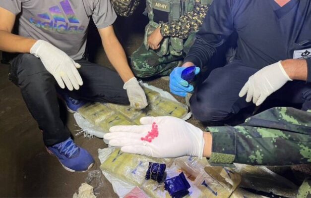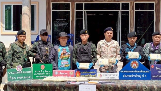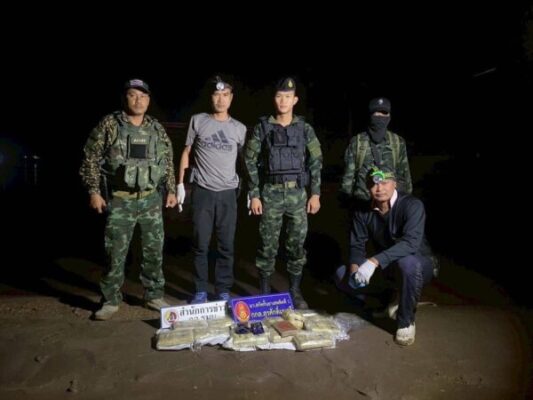 มุกดาหาร ทหารพรานยึดยาบ้าจำนวน 1 กระสอบ และ เฮโรอิน 1 แพ็คมุกดาหาร/เมื่อวันที่ 4 พฤษภาคม 2568 พันตรีคำรณ คุ้มเขต ผู้บังคับกองร้อย กองร้อยเฉพาะกิจทหารพราน 2105 มุกดาหาร สนธิกำลังเจ้าหน้าที่หน่วยงานข้างเคียงจัดกำลังและวางแผน เฝ้าตรวจตามจุดเพ่งเล็งและช่องทางธรรมชาติที่คาดว่ากลุ่มผู้ลักลอบจะใช้เป็นเส้นทางในการรับส่งยาเสพติด(ยาบ้า) บริเวณริมแม่น้ำโขง บ้านพาลุกา หมู่ที่.4 ตำบลชะโนด อำเภอหว้านใหญ่ จังหวัดมุกดาหาร ภายหลังที่ได้รับแจ้งจากแหล่งข่าวว่า จะมีการรับส่งยาเสพติด(ยาบ้า)กัน จนกระทั้งช่วงเวลาประมาณเที่ยงคืน ชุดเฝ้าตรวจพบบุคคลกำลังแบกสิ่งของลักษณะเป็นกระสอบขึ้นมาจากริมโขง และวางซุกช่อนบริเวณดังกล่าว และได้วิ่งหลบหนีไปอย่างเร็ว โดยอาศัยความมืด