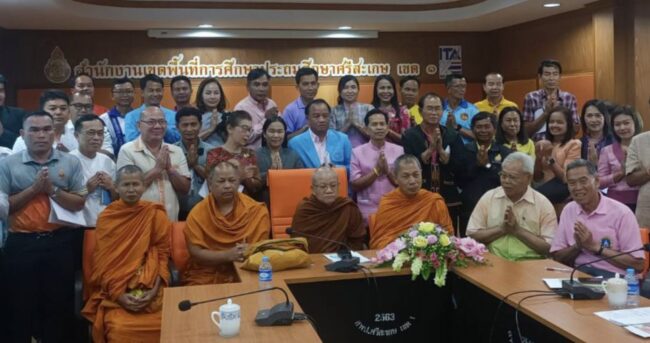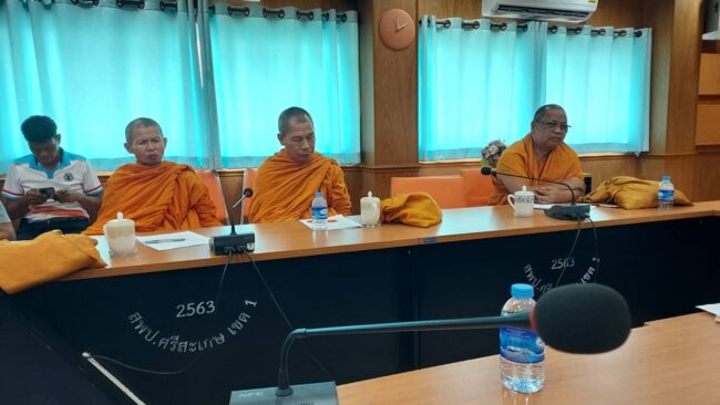 ศรีสะเกษ / เครือข่ายภาคประชาสังคมจังหวัดศรีสะเกษเตรียมต้อนรับสมาชิกวุฒิสภาและอนุกรรมาธิการ ศาสนา วัฒนธรรมและมรดกภูมิปัญญาท้องถิ่น ศึกษาดูงานโครงการโรงเรียนหมู่บ้านศีล 5 ตามพ่ออย่างพอเพียง จังหวัดศรีสะเกษเมื่อวันที่ 7 พฤษภาคม 2568 ที่ห้องประชุมสำนักงานเขตพื้นที่การศึกษาประถมศึกษาศรีสะเกษเขต 1 พระครูสุทธิธรรมพิทักษ์ รองเจ้าคณะจังหวัดศรีสะเกษ เป็นประธานประชุมเครือข่ายโรงเรียน/หมู่บ้านศีล ตามรอยพ่ออย่างพอเพียง เพื่อเตรียมการต้อนรับสมาชิกวุฒิสภาและอนุกรรมธิการศาสนา วัฒนธรรมและมรดกภูมิปัญญาท้องถิ่น ศึกษาดูงานโครงการโรงเรียน/หมู่บ้านศีล 5 ตามรอยพ่ออย่างพอเพียงในระหว่างวันที่ 26-28 มิถุนายน 2568 โดยพระครูอรุณ ปุญโญภาส เจ้าอาวาสวัดบ้านสำโรงเกียรติ และนายสุเทพ สอนบุญทอง ผอ.สพป.ศรีสะเกษเขต 1 นายประดิษฐ์ พรหมเสนา ผู้ทรงคุณวุฒิ นายทิวา รุ้งแก้ว นายกพุทธศมาคมจังหวัดศรีสะเกษ และคณะกรรมการจังหวัดศรีสะเกษ ร่วมประชุมในครั้งนี้ ในการประชุมครั้งนี้ ที่ประชุมมีความเห็นตรงกันว่า ให้ขอความร่วมมือกับโรงเรียนเครือข่ายโรงเรียนศีล 5 ตามรอยพ่ออย่างพอเพียง ทำบุญตักบาตรข้าวสารอาหารแห้งประจำเดือนมิถุนายน ก่อนวันที่ 25 มิถุนายน เพื่อนำข้าวสารอาหารแห้งที่ได้ไปมอบให้ทหาร ตำรวจ อาสาสมัคร และเจ้าหน้าที่อุทยานแห่งชาติเขาพระวิหาร ในวันที่ 26 มิถุนายน 2568 ที่อุทยานแห่งชาติเขาพระวิหาร