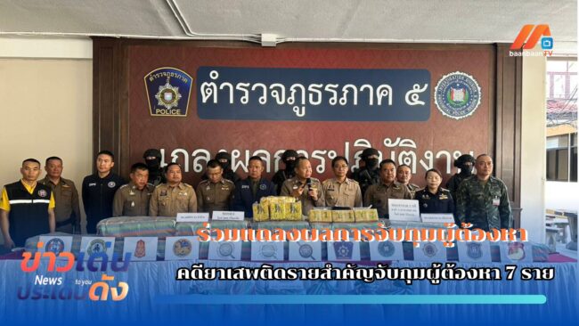 ลำปาง -ภ.จว.ลำปาง ร่วมแถลงผลการจับกุมผู้ต้องหาคดียาเสพติดรายสำคัญที่ ตร.ภาค 5 โดย สภ.แม่พริก จับกุมผู้ต้องหา 7 ราย พร้อมของกลางไอซ์ 305 กก. เมื่อวันที่ 8 พ.ค.2568 ที่ จ.ลำปาง ผู้สื่อข่าวรายงานว่า ตำรวจภูธรจงหวัดลำปาง อำนวยการโดย พล.ต.ต.ภูมิปัญญ์ญา นวตระกูลพิสุทธิ์ ผบก.ภ.จว.ลำปาง มอบหมายให้ พ.ต.อ.ศักดิ์ศรี ยะปาละ รองผบก.ภ.จว. ลำปาง พร้อมด้วย พ.ต.อ.ประสิทธิ์ หล้าสมศรี ผกก.สภ. แม่พริก ฝ่ายปกครองอำเภอแม่พริก นำโดยนายกองตรี ปิยะวุฒิ พิทักษ์บริบาล นอ.แม่พริก จ.ลำปาง ร่วมแถลงผลการสืบสวนจับกุมผู้ต้องหาคดียาเสพติดรายสำคัญ จำนวน 2 คดี ได้แก่ สภ.แม่พริก จ.ลำปาง จับกุมผู้ต้องหา 7 ราย พร้อมของกลางไอซ์ 305 กก.และ สภ.แม่สรวย จ.เชียงราย จับกุมผู้ต้องหา 2 ราย ของกลางยาบ้า 1,576,000 เม็ด โดยมี พล.ต.ท.กฤตธาพล ยี่สาคร ผบช.ภ.5 เป็นประธานแถลง ณ ลานสโมสรอินทนนท์ ตำรวจภูธรภาค 5 เชียงใหม่