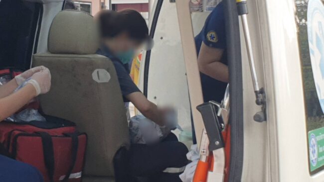 เอามือประคองร่างทารกน้อยเอาไว้ กระทั่งแพทย์กู้ชีพได้มาถึงช่วยเหลือตัดสายสะดือออกจากกัน นำทารกน้อยขึ้นรถพยาบาล และปฐมพยาบาลแม่เบื้องต้นแล้วนำส่ง รพ.ชลบุรี โดยมีนายTHEIN THAN 00 (เสียน เตียน อู) (สัญชาติ MYANMAR) ผู้เป็นสามีและคุณพ่อป้ายแดง ตามดูแลด้วยความเป็นห่วง และต่อมาทราบว่าแม่และเด็กเพศหญิงปลอดภัยแล้วสอบถามนายกิตติศักดิ์ พึ่งพา อาสาสมัครกู้ภัยมูลนิธิไตรคุณธรรม เปิดเผยว่า ตนได้รับแจ้งให้มารับคนป่วย เมื่อมาถึงพบว่าเป็นผู้หญิงคลอดลูก พบเด็กหัวทิ่มอยู่ในชักโครก ตนอุ้มเด็กออกมากระตุ้น ตอนนั้นเด็กมีชีพจร พบว่าเด็กเป็นเพศหญิง ตอนนี้ปลอดภัยดี ซึ่งแม่เด็กบอกว่าไม่รู้ว่าตัวเองท้อง บอกว่าเข้าห้องน้ำแล้วเด็กก็คลอดออกมาเลย…….