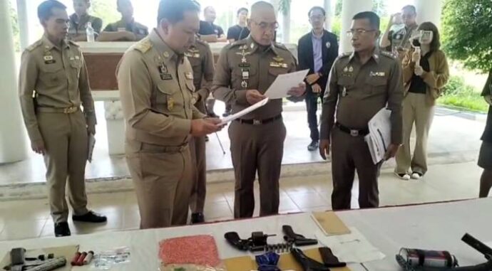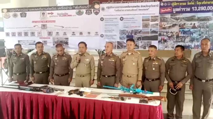 อุทัยธานี 08-05-68 แถลงข่าวตำรวจปิดล้อมตรวจค้นพื้นที่เป้าหมายจับกุมผู้ต้องหายึดทรัพย์กว่า 13 ล้านบาทเมื่อเวลา 14.00 น ของวันที่ 8 พฤษภาคม 2568 ผู้สื่อข่าวรายงานที่กองบังคับการตำรวจภูธรจังหวัดอุทัยธานี โดยนายธีรพัฒน์ คัชมาตย์ ผู้ว่าราชการจังหวัดอุทัยธานี พร้อมพล.ต.ต.ชัยพร จุณณวัตต์ ผบก.ภ.จว.อุทัยธานี และข้าราชการตำรวจที่เกี่ยวข้อง ได้แถลงข่าว เปิดปฏิบัติการบูรณาการปิดล้อม ตรวจค้นพื้นที่เป้าหมาย จับกุมผู้ต้องหาและยึดทรัพย์รวมกว่า 13 ล้านบาท โดยจังหวัดอุทัยธานี ได้รับคัดเลือกเป็น 1 ใน 12 จังหวัดนำร่อง ในการแก้ปัญหายาเสพติดตามข้อสั่งการของนายกรัฐมนตรี ภายใต้โครงการ แก้ปัญหายาเสพติด เพื่อให้ประชาชนมีความสุข