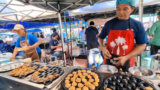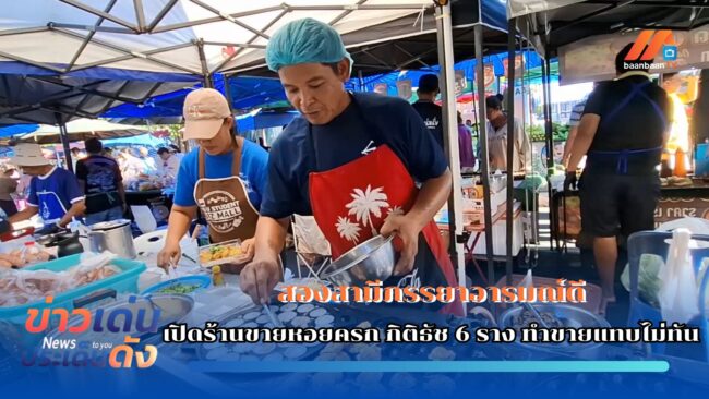 สองสามีภรรยาอารมณ์ดี เปิดร้านขายหอยครก กิติธัช 6 ราง ทำขายแทบไม่ทัน ทั้งหอยครก หมึกครก และกุ้งครก ลูกค้าเพียบวันนี้ 9 พฤษภาคม 2568 ที่ตลาดนัดหน้าที่ว่าการอำเภอเมืองสงขลา เขตเทศบาลนครสงขลา อ.มือง จ.สงขลา ซึ่งเป็นตลาดนัดที่ประชาชน ชาวสงขลา มาเดินจับจ่ายใช้สอยซื้อสินค้ากันเป็นจำนวนมาก อีกทั้งในวันนี้วันพืชมงคล เป็น วันหยุดราชการอีกด้วย นายกิติธัช หวังเดหวา อายุ 53 ปี และนางจันจิรา เลขะสม อายุ 48 ปี สองสามีภรรยาอารมณ์ดี ได้มาเปิดร้านขายหอยครกกิติธัช ซึ่งมีทั้ง หอยครก หมึกครก และกุ้งครก ในราคา เริ่มต้นที่ 30 และ 40 บาท โดยใช้รางในการทำหอยครก 6 ราง เพื่อให้ทันกับลูกค้าที่เข้ามาอุดหนุนอย่างต่อเนื่องตลอดเวลาจนทำแทบไม่ทัน ซึ่งลูกค้าส่วนใหญ่จะเป็นลูกค้าทั้งขาจรและขาประจำ โดยพ่อค้าแม่ค้า จะส่งเสียงเจื้อยแจ้ว หยอกล้อกับลูกค้าอยู่ตลอดเวลาแบบคนอารมณ์ดี ซึ่งเป็นจุดขายจุดหนึ่งที่คนอื่นไม่มี จึงเป็นจุดเด่นในการดึงดูดลูกค้า ให้แวะเข้ามาซื้อได้เป็นอย่างดี จากอัธยาศัยของคนอารมณ์ดี ที่ได้ฟังแล้วก็ต้องอมยิ้ม