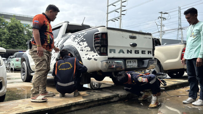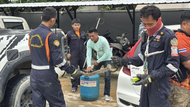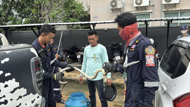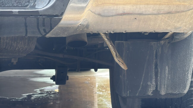 ชาวบ้านโร่แจ้ง เจ้าหน้าที่จับงูแอบใต้ท้องรถ หาอยู่นานไม่เจอ สุดท้ายยอมออกเพราะยาฉีดยุงเมื่อเวลา 09.30 น. วันที่ 12 พฤษภาคม 2568 เจ้าหน้าที่งานป้องกันและบรรเทาสาธารณภัย เทศบาลเมืองบางแก้ว เข้าช่วยเหลือประชาชน หลังได้รับแจ้งว่ามีงูเหลือมเข้าไปอาศัยอยู่ใต้ท้องรถกระบะ บริเวณลานจอดรถของบริษัทแห่งหนึ่ง ถนนหลังวัดหนามแดง ตำบลบางแก้ว อำเภอบางพลี จังหวัดสมุทรปราการเมื่อเจ้าหน้าที่เดินทางไปถึง เจ้าของรถแจ้งว่างูยังอยู่บริเวณใต้ท้องรถกระบะหมายเลขทะเบียน 8 กท 575 กรุงเทพมหานคร เจ้าหน้าที่ใช้เวลาค้นหาอยู่นานแต่ไม่พบงูตัวดังกล่าว จึงใช้ยากันยุงแบบสเปรย์ฉีดทั่วตัวรถเพื่อเป็นการไล่ตัวงู จนที่สุดก็พบงูเหลือมพยายามเลื้อยออกมา เจ้าหน้าที่จึงใช่มือคว้าคอจับตัวงูเอาไว้ได้ เป็นงูเหลือม