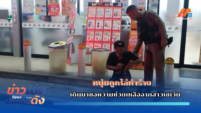 ปราจีนบุรี-หนุ่มถูกไล่ทำร้ายเดินมาขอความช่วยเหลือจากสาวเซเว่น