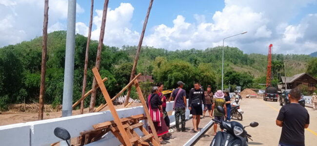 นายอำเภอสบเมยลงพื้นที่ตรวจสะพานเจ้าปัญหาเมื่อวันที่ 13 พฤษภาคม 2568 เวลา 10.30 น นายคำผัน โมกไธสง นายอำเภอสบเมย พร้อมด้วย นายจรูญ จินะกัณฑ์ปลัดอาวุโส ได้ลงพื้นที่ตรวจสอบสะพานบ้านแม่ทะลุ หมู่ที่ 5 ตำบลสบเมย อำเภอสบเมย จังหวัดแม่ฮ่องสอน ร่วมกับราษฎรในพื้นที่ ผู้รับเหมาฯ นายช่างควบคุมงาน ตามโครงการฟื้นฟูทางหลวงชนบทอันเนื่องมาจากเหตุภัยพิบัติ สาย มส.004 สะพานบ้านแม่ทะลุ อำเภอสบเมย จังหวัดแม่ฮ่องสอน ซึ่งเป็นของหน่วยงานสำนักงานทางหลวงชนบท ที่ 10 (เชียงใหม่) วงเงินก่อสร้าง 13,900,000.- บาท (สิบสามล้านเก้าแสนบาทถ้วน)โดยบริษัทแห่งหนึ่งในพื้นที่เริ่มดำเนินการตั้งแต่เดือนธันวาคม 2568 จวนใกล้จะหมดสัญญา จึงได้ดำเนินการก่อสร้างต่อจนทำให้เกิดปัญหาส่งผลกระทบต่อการเดินทางทั้งเด็กนักเรียนและประชาชนโดยทั่วไป ทางผู้รับเหมาได้ทำบรรไดไม้พาดกับราวสะพานเพื่อแก้ไขปัญหาเฉพาะหน้าโดยไม่คำนึงถึงความปลอดภัยของผู้ใช้โดยเฉพาะเด็กๆนักเรียนตัวเล็กๆทางนายอำเภอสบเมยได้แจ้งให้ผู้รับเหมาดำเนินการให้แล้วเสร็จภายใน 4 วันพร้อมจัดทำราวสะพานขึ้น – ลงของบันไดไม้ชั่วคราวที่พาดกับราวสะพาน หากการตอก