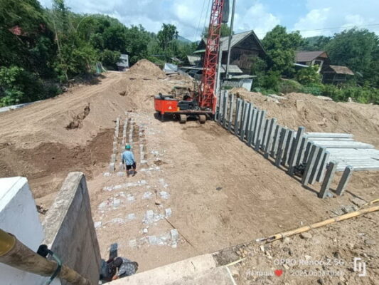 เสาเข็มแล้วให้รีบถมคอสะพานเพื่อให้สัญจรได้ทางผู้รับเหมาก็รับปากทางด้านนายนิธิชัย สมงาม นายช่างผู้ควบคุมงาน สำนักงานทางหลวงชนบทที่ 10 เชียงใหม่ เปิดเผยต่อผู้สื่อข่าวว่า เดินทีทางสำนักงานทางหลวงชนบทที่ 10 เชียงใหม่ได้แก้ไขปัญหาให้ชาวบ้านโดยพาดสะพานแบลิงค์เป็นการชั่วคราวนานแล้วตั้งแต่เกิดปัญหาเกิดอุทกภัย แต่เมื่อจะทำการตอกเสาเข็มจำเป็นต้องรื้อสะพานแบลิงค์ออก เนื่องจากไม่มีพื้นที่ให้ตอกเสาเข็มไม่งั้นทางผู้รับเหมาไม่สามารถทำงานได้ ส่วนจะให้ทำทางเบี่ยงไม่สามารถทำได้เนื่องจากเป็นสะพานขนาดใหญ่และมีแม่น้ำใหญ่ไม่มีพื้นที่ให้ทำทางเบี่ยง และในสัญญาจ้างไม่ได้ระบุให้มีการสร้างทางเบี่ยงเนื่องจากมีเส้นทางสำรองซึ่งสามารถเข้าออกได้ แต่จะต้องขับรถอ้อมซึ่งใช้ระยะทางประมาณ 4 กิโลเมตร