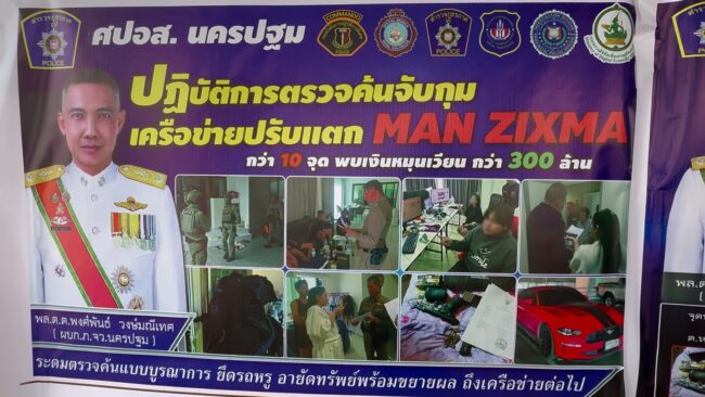 โดยการจับกลุ่มดังกล่าวเจ้าหน้าที่ตำรวจสถานีตำรวจภูธรเมืองนครปฐมได้ทำการสืบหาข่าว จนกระทั่งพบว่า นายกรกฏ พบสุข อายุ 30 ปี และนางสาวศศิพร ขนุนทอง อายุ 24 ปี เป็นเจ้าของเว็บพนัน pananthai.com และ play.surinam888.com ซึ่งได้มาตั้งในพื้นที่เขตอำเภอเมืองนครปฐมเจ้าหน้าที่จึงได้รวบรวมหลักฐานและออกหมายจับทั้งคู่พร้อมปูพรหมเข้าค้นเป้าหมาย 10 แห่ง แบ่งเป็น จังหวัดนครปฐม 4 แห่ง จังหวัดชลบุรี 1 แห่ง และกรุงเทพมหานคร 5 แห่ง พร้อมด้วยของกลาง 16 รายการ อาทิเช่นรถยนต์เก๋งยี่ห้อฟอร์ดมาแต่งสองประตูสีแดง ทะเบียน 9 กฉ 42 กทม. รถกระบะยี่ห้อฟอร์ดเรนเจอร์ สี่ประตู สีเทา ทะเบียน 9 กล 7422กทม. อาวุธปืนขนาด 9 มิลลิเมตรหนึ่งกระบอก พร้อมกระสุนปืน 40 นัด คอมพิวเตอร์ 4 เครื่อง โน๊ตบุ๊ก 4 เครื่อง เราเตอร์ 5 ตัว โทรศัพท์สองเครื่อง iPad หนึ่งเครื่อง สมุดบัญชี17 เล่ม บัตรเอทีเอ็ม สองใบ แก้วน้ำ กระเป๋าเดินทาง ผ้าห่มและเสื้อสกรีน เว๊บพนัน หลายรายการ