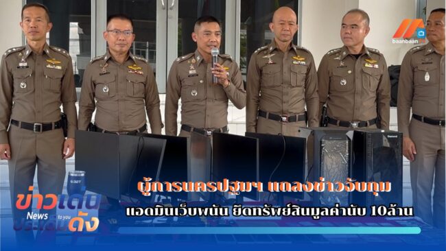 นครปฐม130568ผู้การนครปฐมฯ แถลงข่าวจับกุมแอดมินเว็บพนัน ยึดทรัพย์สินมูลค่านับ 10ล้านผู้บังคับการตำรวจภูธรจังหวัดนครปฐมนำทีมแถลงผลการดำเนินการจับกุมผู้ต้องหาในคดีเว็บพนันออนไลน์โดยมีผู้ต้องหาถูกจับกลุ่มหลายรายและสามารถติดตามยึดทรัพย์สินเบื้องต้นได้มูลค่านับ 10 ล้านบาทโดยตรวจสอบพบว่าสองผู้ต้องหาได้มีการนำเซิร์ฟเวอร์มาติดตั้งไว้ที่เขตอำเภอเมืองนครปฐมจึงได้มีการสืบข่าวและติดตามจับกลุ่มดังกล่าวนอกจากนี้ยังมีกระแสรายงานว่า ทั้งคู่มีข้าราชการระดับสูงหรือเป็นนายทหารอยู่หลังซึ่งทางตำรวจจะมีการติดตามขยายผลถึงข้อเท็จจริงดังกล่าวว่าเป็นจริงหรือไม่ซึ่งหากเป็นจริงจะมีการออกหมายจับและติดตามจับต่อไปวันที่ 13 พฤษภาคม 68 ที่กองบังคับการตำรวจภูธรจังหวัดนครปฐม 333333 ร่วมกันแถลงข่าวผลการจับกลุ่มเว็บพนัน ออนไลน์โดยสามารถจับผู้ต้องหาได้เจ็ดรายและยึดทรัพย์สินหลาย รายการมูลค่านับ 10 ล้านบาท โดยเป็นกลุ่มแอดมินที่อยู่ในจังหวัดนครปฐม