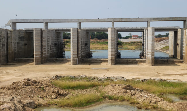 กรมชลประทานรายงานการก่อสร้างประตูระบายน้ำโพธิ์ประทับช้างในแม่น้ำยมพิจิตรคืบหน้า60%แล้ว