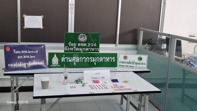นายกรณ์ชัย ปัญญาวัฒนพงศ์ นายด่านศุลกากรมุกดาหาร ได้รับข้อมูลว่าจะมีการลักลอบนำยาบ้าเข้ามาในราชอาณาจักรจึงได้สั่งการให้ นายสานุ ศิลปไชย ผู้อํานวยการ ส่วนควบคุมทางศุลกากร และนายปริญญา ผลมั่ง หัวหน้าฝ่ายควบคุมและตรวจสอบทางศุลกากร ร่วมกับ ร้อยทหารพรานที่ 2105 ฉก.ทพ.21 ด่านตรวจสัตว์ป่ามุกดาหาร และ ตชด.234 ทำการตรวจค้นรถบรรทุกต้องสงสัย ยี่ห้ออีซูซุ หมายเลขทะเบียน 70-1187 / 70-1188 นครพนม ขณะแล่นมาจอดที่บริเวณช่องขาเข้าด่านพรมแดนมุกดาหาร สะพานมิตรภาพไทย-ลาว แห่งที่ 2 (มุกดาหาร-สะหวันนะเขต )พบยาบ้าบรรจุในถุงพลาสติกซุกซ่อนบริเวณที่ใส่ของด้านขวาข้างประตูผู้ขับขี่ รวมจำนวน 372 เม็ด เจ้าหน้าที่จึงได้ควบคุมตัวนายปองคุณ แซ่หว่อง อายุ 38 ปี อยู่บ้านเลขที่ 325 หมู่ที่ 5 ตำบลพังขว้าง อำเภอเมือง จังหวัดสกลนคร ผู้ขับขี่ดำเนินคดีในข้อหาลักลอบนำยาเสพติดเข้ามาในราชอาณาจักร และนำตัวส่งพนักงานสอบสวน สภ.เมืองมุกดาหาร เพื่อดำเนินคดีตามกฎหมายต่อไป