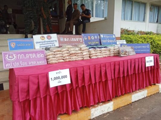 ตำรวจ ทหาร อุบลฯแถลงจับกุม ยาบ้าข้ามชาติล็อตใหญ่รวมกว่า 1.3 ล้านเม็ด