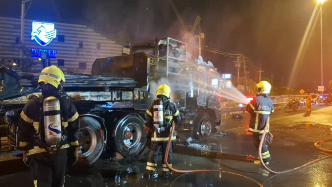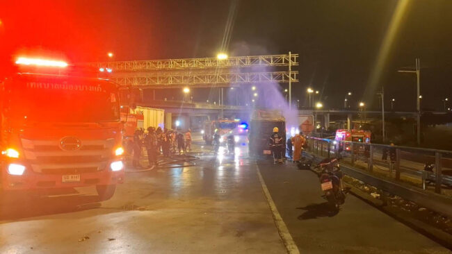 เมื่อเวลา 21.00 น. วันที่ 15 พฤษภาคม 2568 ศูนย์วิทยุกู้ชีพปราการ ได้รับแจ้งมีเหตุเพลิงไหม้รถบรรทุกพ่วง 18 ล้อ บริเวณหน้าด่านเก็บเงินบางแก้วมุ่งหน้าพระราม 2 ในตำบลบางแก้ว อำเภอบางพลี จังหวัดสมุทรปราการ หลังรับแจ้งจึงพร้อมด้วยรถดับเพลิง เทศบาลเมืองบางแก้ว และ อบต.บางพลีใหญ่ รวม จำนวน 4 คัน เดินทางตรวจสอบที่เกิดเหตุ