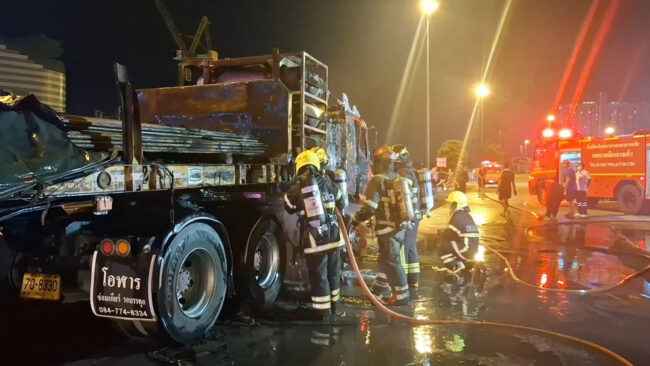 จอดรถพัก เสียบพัดลมไว้ไฟลุกไหม้รถหัวลากลุกลามถังก๊าซ NGV วอดเสียหายทั้งคัน