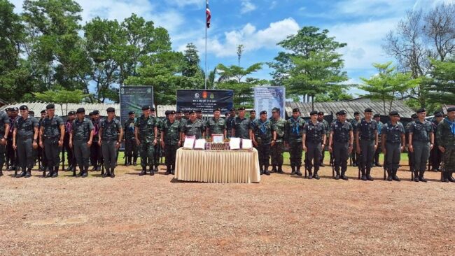 วันที่ 16 พฤษภาคม 2568 ที่กองร้อยป้องกันชายแดนที่ 3 (ร้อย.ปชด.ที่ 3) พลเอก ณัฐวุฒิ นาคะนคร รองผู้บัญชาการทหารบก และรองผู้บัญชาการศูนย์ปฏิบัติการกองทัพบก เดินทางมาตรวจเยี่ยมพื้นที่และรับฟังสรุปการปฏิบัติงานและสถานการณ์ความมั่นคงบริเวณชายแดนไทย – มาเลเซีย โดยมีร้อยเอก พงศกร เทพษร ผู้บังคับกองร้อยป้องกันชายแดนที่ 3 พร้อมกำลังพล ร่วมต้อนรับ