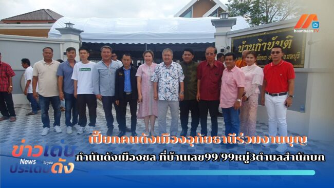 ชลบุรี..สจ.เปี๊ยกคนดังเมืองอุทัยธานีร่วมงานบุญกำนันดังเมืองชล ที่บ้านเลข99/99หมู่3ตำบลสำนักบก นายปภาวิชญ์(สจเปี๊ยกอุทัย) บุษวดีประธานสภาจังหวัดอุทัยธานีและนายราชันย์ วิจิตร กำนันตำบลนาป่า นายสมยศ พรมภัคษร นายกองค์การบริส่วนตำบลสำนักบกและนักการเมืองท้องถิ่นรวมถึงประชาชนจำนวนมากร่วมแสดงความยินดีกับนายนิติ ประสงค์กิจกำนันป้ายแดงตำบลสำนักบก อ.เมือง จ.ชลบุรี ได้ทำบุญฉลองที่ได้เป็นกำนัน ทำบุญบ้าน และฉลองคล้ายวันเกิดในคราวเดียวกัน นายนิติ ประสงค์กิจ ได้เป็นผู้ใหญ่บ้านมาหลายปีจนได้รับความใว้วางใจจากชาวบ้านและเพื่อนผู้ใหญ่ด้วยกัน จนได้รับเลือกได้เป็นกำนันประจำตำบลสำนักบก