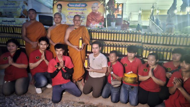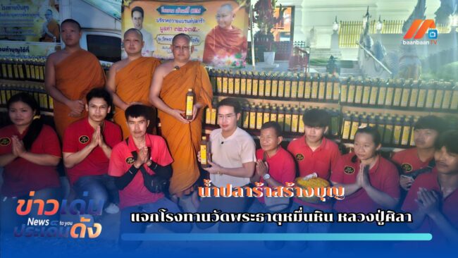 น้ำปลาร้าสร้างบุญ แจกโรงทานวัดพระธาตุหมื่นหิน หลวงปู่ศิลาผู้สื่อข่าวรายงานว่า วันที่ 17 พ.ค. 68 เวลา 18.09 น. ที่วัดพระธาตุหมื่นหิน ต.กุดปลาค้าว อ.เขาวง จ.กาฬสินธุ์ นายอุดมชัย สายธารพรา (เถ้าแก่กี้) บริษัทเถ้าแก่กี้79จำกัด ผู้ผลิตน้ำปลาร้าชื่อดังในจังหวัดกาฬสินธุ์ ร่วมกับ พระครูปลัดสุวัฒนสาธุคุณ เจ้าอาวาสวัดพลายชุมพล ประธานมูลนิธิพลายชุมพล บ้านหางคลอง หมู่5 ต.บ้านกล้วย อ.เมือง จ.สุโขทัย สร้างแบรนด์ผลิต “น้ำปลาร้าสร้างบุญ” ขนาด900ml. จำนวน 1,000ขวด เพื่อจัดตั้งโรงทานแจกน้ำปลาร้าสร้างบุญ ในงานพิธี “อาบน้ำมนต์ปัญจมหาพุทธาฟ้าสนั่นก้องเวหาเก้าโองการพระคาถาสงเคราะห์บูชาโชค ณ วัดพระธาตุหมื่นหิน โดยมีพระราชวัชรธรรมโสภณ หลวงปู่ศิลา สิริจันโท องค์ประธานทำน้ำมนต์