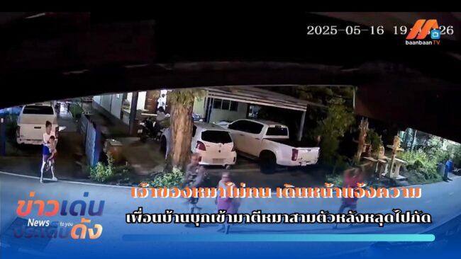 นครปฐม180568เจ้าของหมาไม่ทน เดินหน้าแจ้งความ เพื่อนบ้านบุกเข้ามาตีหมาสามตัวหลังหลุดไปกัด เด็กหนึ่งตัวเจ้าของหมานำภาพคลิปวงจรปิดคนใกล้บ้านเข้ามารุมตีหมาสามตัวในบ้านหลังหนึ่งตัวหลุดออกไปแล้ววิ่งกัดหลานของผู้ก่อเหตุ เบื้องต้นชี้แจงว่ามาที่หลุดออกไปแล้วกัดเด็ก ถูกก่อเหตุการตีก็เข้าใจได้แต่หมาที่อยู่ในบ้านไม่รู้เรื่องด้วยอีกสองตัวก็ถูกตีอย่ารุนแรงหรือว่าทำเกินกว่าเหตุ ส่วนกรณีที่ หมาหลุดออกไปกัดเด็กก็ยอมรับความผิดพร้อมชดใช้และขอให้แยกเป็นกรณีเมื่อเวลา 13.30 นของวันที่ 18 พฤษภาคม 2568 ผู้สื่อข่าวรายงานว่าจากกรณีที่ ผู้ใช้สื่อสังคมออนไลน์ facebook ที่ใช้ชื่อว่า น้ำผึ้งหวาน nam phueng waan ได้โพสต์คลิปวีดีโอพร้อมระบุข้อความว่า “คือเขาใจว่าทุกคนก็รักลูกหลานตัวเอง เราเองก็ไม่อยากให้เกิดเหตุการณ์แบบนี้ แต่ในเมื่อเกิดขึ้นแล้ว ทางเราก็ยินดีรับผิดชอบทุกอย่าง แต่น่าจะเข้ามาพูดคุยกันดีๆ แต่นี่มันเกินไปไหม เหตุการณ์มีอยู่ว่า….ที่บ้านมีหมา 3 ตัว ซึ่งผูกไว้ แต่มีหมาตัวหนึ่งได้หลุดไป และได้ไปกัดเด็กแถวบ้าน และหลังจากนั้นทางญาติเด็กได้พากันมารุมตีหมาที่บ้าน รวมถึงตัวที่ยังผูกอยู่ด้วยทั้ง 2 ตัว ถ้าตีตัวที่กัด เราก็พอจะเข้าใจได้ แต่นี่เข้ามาตีทุกตัวในบ้าน ทั้งๆที่หมาอีก 2 ตัวไม่รู้เรื่องเลย มันเกินไปจริงๆ จากเหตุการณ์ที่เกิดขึ้นเราก็จะผูกหมาให้แน่นหนากว่าเดิม เพื่อไม่ให้เหตุการณ์แบบนี้เกิดขึ้นอีกโดยนางสาววรัญญา สระสมทรัพย์ บ้านอยู่หมู่ 2 ต. พระเนียด อ. นครชัยศรี จังหวัดนครปฐม เจ้าของหมา ได้เปิดเผยว่า ที่บ้านมีสุนัขจำนวน 3 ตัวปรากฏว่าวันนั้นหลุดไป 1 ตัวคือสีดำ เดินไปตามถนนขณะนั้นมีเด็กเดินมา 2 คนกับแม่ แล้วถูกหมาไล่ แต่ตนเองก็ไม่ทราบว่ากัดหรือไม่ เนื่องจากตรวจเช็คจากกล้องวงจรปิด พบว่าไม่เห็นตอนโดนกัด แต่เห็นขณะที่แม่เด็กกำลังดูบาดแผลที่ก้นว่ากัดหรือไม่