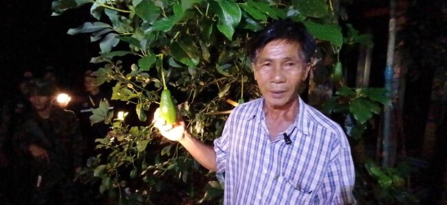 เล่าว่า ตนเองปลูกอะโวคาโด 5 ไร่ สวนใหญ่ปลูกอะโวคาโดพันธุ์พบพระ 08 ปีนี้ปีแรก ที่ให้ผลผลิต ช่วงนี้กำลังจะให้ผลผลิต มีขโมย เข้ามาในไร่ เพื่อขโมยอะโวคาโด แต่ตนเอง นอนเฝ้าสวนอะโวคาโดอยู่แล้ว ขโมยเห็นก็ใด้วิ่งหนีไป ตนเองได้โทรหาผู้ใหญ่บ้านพร้อมทั้งชรบ.คณะกรรมการหมู่บ้าน ได้ติดตามหัวขโมย แต่ไม่ทันวันนี้ต้องขอขอบคุณ พี่ๆทหาร ตำรวจ ชรบ.หมู่บ้าน ผู้ใหญ่บ้านพร้อมผู้ช่วย ไม่ออกลาดตระเวนสอดส่องดูแล ตามสวนต่างๆ