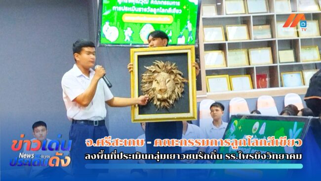 เมื่อวันที่ ๒๑ พฤษภาคม ๒๕๖๘ เวลา ๐๙.๓๐ น.ที่โรงเรียนไพรบึงวิทยาคม โรงเรียนต้นแบบโรงเรียนศีล ๕ ตามรอยพ่ออย่างพอเพียง อำเภอไพรบึง จังหวัดศรีสะเกษ คณะกรรมการประเมินลูกโลกสีเขียวภาคตะวันออกเลี้ยงเหนือตอนล่าง นำโดย นางประมวล มาลัย นายฟีรชัย วงศ์เลิศ( ครูจ่อย) นายวิทยา ภูมิพันธ์ดร.ธายุกร พระบำรุง น.ส.จิตต์ปกัสสร์ ปวรดุลยวัล ลงพื้นที่ประเมินรางวัลลูกโลกสีเขียวประเทกลุ่มเยาวชนกลุ่มเยาวขนรักษ์ถิ่นโรงเรียนไพรบึงวิทยาคม เพื่อรับรางวัลลูกโลกสีเขียว โดยมีนายพิวา รุ้งแก้ว ประธานคณะกรรมการประสานงานเพื่อพัฒนาจังหวัดศรีสะเกษ คณะกรรมการสถนศึกษา นายสุจินต์ หล้าธรรมผู้อำนวยการโรงเรียน พร้อมด้วยคณะครูนักเรียน โรงเรียนไพรบึงวิทยาคม ร่วมให้การต้อนรับและรับการประเมิน
