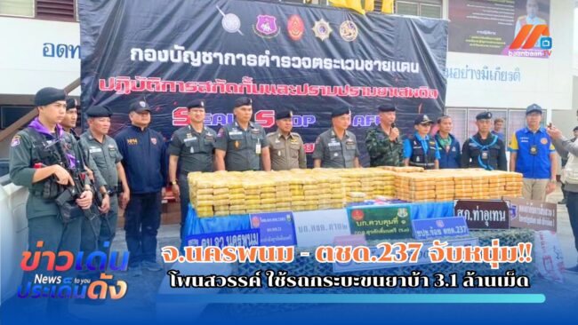 สืบเนื่องจากเมื่อวันที่ 21 พฤษภาคม 2568 เวลาประมาณ 21.00 น. ร.ต.อ.จรณ์ แก้วคำแสน หัวหน้าชุดปฏิบัติการข่าว ร้อย ตชด.237 ได้รับแจ้งจากแหล่งข่าวว่าจะมีขบวนการค้ายาเสพติดลักลอบนำยาบ้าเข้ามาในพื้นที่ จึงได้นำกำลังเจ้าหน้าที่เข้าตรวจสอบบริเวณริมทางหลวงแผ่นดินหมายเลข 2032 สายบ้านท่าดอกแก้ว – อำเภอศรีสงคราม จังหวัดนครพนม ใกล้หลักกิโลเมตรที่ 2-3 พบชายต้องสงสัยชื่อ นายเฉลิม (สงวนนามสกุล) อยู่บ้านโพนเจริญ หมู่ที่ 10 ต.โพนจาน อ.โพนสวรรค์ จ.นครพนม ขับรถกระบะมิตซูบิชิ สีขาว ทะเบียน ฒห 9613 กรุงเทพมหานคร จึงได้ขออนุญาตตรวจค้นภายในรถยนต์ห่อพบยาบ้าจำนวน 1,591 มัดภายในบรรจุยาบ้าจำนวน 3,182,000 เม็ด จึงทำการตรวจยึดไว้เป็นของกลาง และแจ้งข้อกล่าวหานายเฉลิมว่า “จำหน่ายยาเสพติดให้โทษประเภทที่ 1 (เมทแอมเฟตามีน) โดยมีลักษณะการกระทำเพื่อการค้า ก่อให้เกิดการแพร่ระบาดในกลุ่มประชาชน ส่งผลกระทบต่อความมั่นคงของรัฐและความปลอดภัยของประชาชน โดยฝ่าฝืนต่อกฎหมาย” จากนั้นเจ้าหน้าที่ได้ควบคุมตัวผู้ต้องหาพร้อมของกลาง ส่งพนักงานสอบสวน สภ.ท่าอุเทน เพื่อดำเนินคดีตามกฎหมายต่อไป.