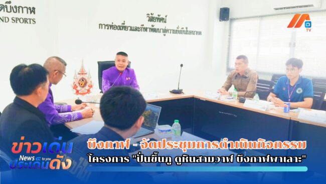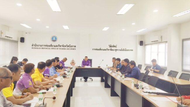 วันศุกร์ที่ 23 พฤษภาคม 2568 เวลา 11.00 น. สำนักงานการท่องเที่ยวและกีฬาจังหวัดบึงกาฬ นำโดยนายณรงค์ศักดิ์ คุรุพันธ์ ท่องเที่ยวและกีฬาจังหวัดบึงกาฬ จัดการประชุมการดำเนินกิจกรรม โครงการ ปั่นขึ้นภู ดูหินสามวาฬ บึงกาฬพาเลาะ ณ ห้องประชุมสำนักงานการท่องเที่ยวและกีฬาจังหวัดบึงกาฬ ซึ่งจะจัดขึ้นในวันอาทิตย์ที่ 1 มิถุนายน 2568