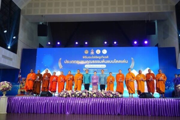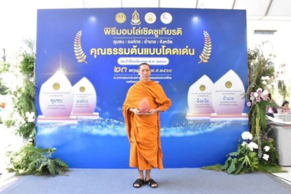 ประเภท ชุมชน ได้แก่ ชุมชนวัดสำโรง พระปลัดประพจน์ สุปภาโต ผู้ช่วยเจ้าอาวาสวัดสำโรง เข้ารับถวายโล่เชิดชูเกียรติ