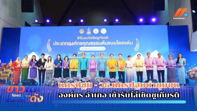 โอกาสนี้ จังหวัดนครปฐมเข้ารับโล่เชิดชูเกียรติชุมชน องค์กร อำเภอ จากผลการคัดเลือกระดับคุณธรรมต้นแบบโดดเด่น ดังนี้