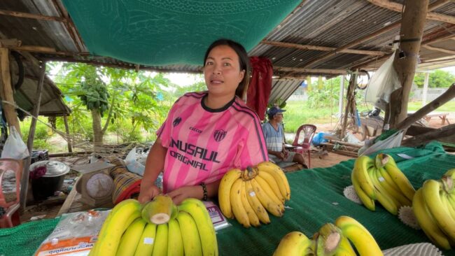 เมื่อเวลา 13.00 น. วันที่ 26 พ.ค. 2568 ผู้สื่อข่าวลงพื้นที่ บ้านนาเพียง ต.สำราญ จ.ขอนแก่น ซึ่งเป็นหมู่บ้านปลูกกล้วยหอมทองรายใหญ่ ของ จ.