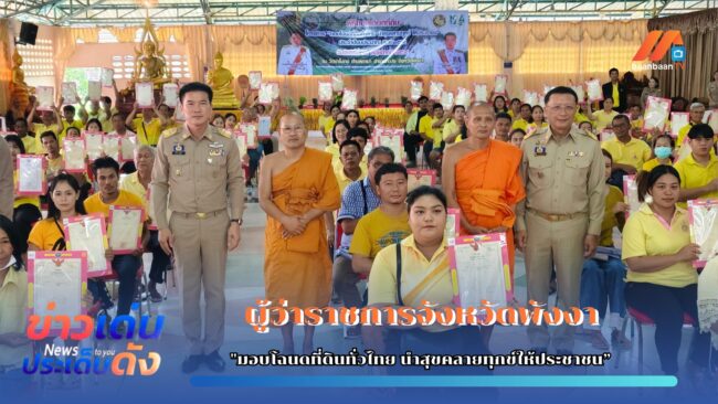 พังงา – ผู้ว่าราชการจังหวัดพังงามอบโฉนดที่ดินให้กับชาวบ้าน ตามโครงการ “มอบโฉนดที่ดินทั่วไทย นำสุขคลายทุกข์ให้ประชาชน”