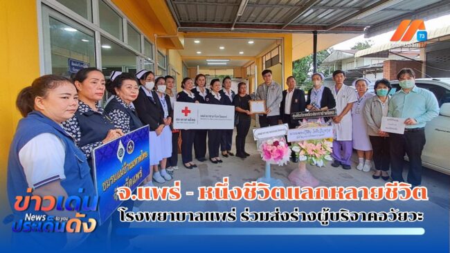เมื่อเวลา 10 นาฬิกา วันที่ 29 พฤษภาคม 2568 นพ.วิชิน โชติปฎิเวชกุล ผู้อำนวยการโรงพยาบาลแพร่ พร้อมด้วย นายประเสริฐ ฉลอม รองผู้อำนวยการฝ่ายบริหาร, คณะเจ้าหน้าที่โรงพยาบาลแพร่ และคณะเหล่ากาชาดจังหวัดแพร่ มอบพวงหรีดและเกียรติบัตร เพื่อแสดงความไว้อาลัยและขอบคุณครอบครัว นางสาวนิภารัตน์ กันยะมี ชาวบ้านหมู่ 5 ตำบลเตาปูน อำเภอสอง จังหวัดแพร่ ที่ลูกสาวที่เสียชีวิตด้วยอุบัติเหตุ และประสงค์จะมอบอวัยวะให้กับสภากาชาดไทย