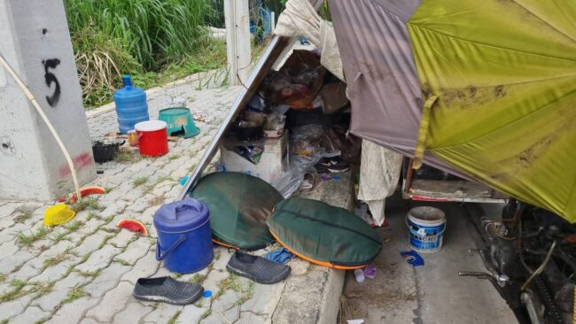 ที่ ถ.กาญจนาภิเษก ต.เสาธงหิน อ.บางใหญ่ จ.นนทบุรี ผู้สื่อข่าวลงพื้นที่พบรถซาเล้งเก็บของเก่าจอดอยู่ข้างทางของเก่าเต็มรถและพบบ้านนำมาพิงรถเอาใว้เพื่อกันแดดกันฝนบนฟุตบาทพบเต่าถ่านเล็กๆเหล็กปิ้งย่างเอาไว้ทำกับข้าวด้านในรถซาเล้งพบ นายอภิรัตน์ แซ่ซิ้ม อายุ 57 ปี น.ส.กุศุมา รุจิโฉม อายุ 46 ปี สองสามีภรรยาชาวจังหวัดจันทบุรี