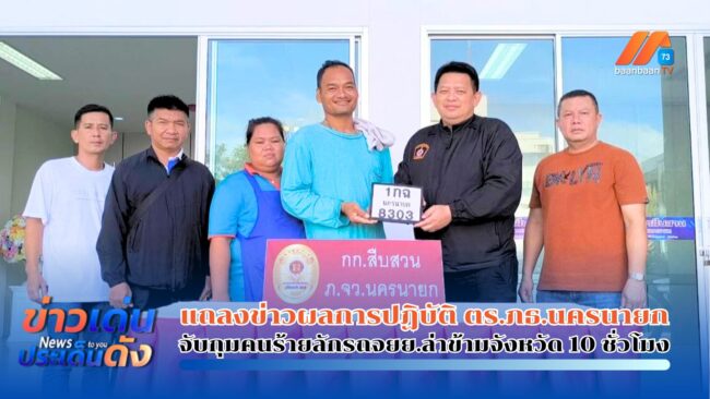 นครนายก – แถลงข่าวผลการปฏิบัติ ตร.ภธ.นครนายก จับกุมคนร้ายลักรถจยย.ล่าข้ามจังหวัด 10 ชั่วโมง