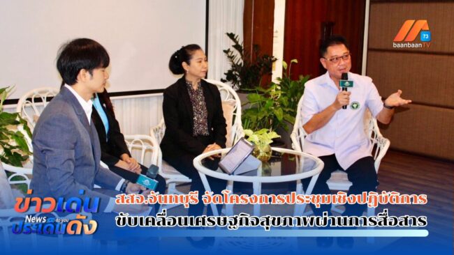 เมื่อวันที่ 30 พฤษภาคม 2568 สำนักงานสาธารณสุขจังหวัดจันทบุรี ได้จัดโครงการประชุมเชิงปฏิบัติการขับเคลื่อนเศรษฐกิจสุขภาพผ่านการสื่อสารจังหวัดจันทบุรี ภายใต้แนวคิด “สื่อสารดี สุขภาพดี สังคมดี สู่จันทบุรียั่งยืน” ณ ห้องประชุม โรงแรมมณีจันท์รีสอร์ท จังหวัดจันทบุรี โดยมีผู้เข้าร่วมจากหน่วยงานภาครัฐ ภาคเอกชน ภาคประชาชน และเครือข่ายสื่อมวลชนในพื้นที่ มาร่วมแลกเปลี่ยนเรียนรู้และสร้างเครือข่ายการสื่อสารสุขภาพ กิจกรรมภายในงานเริ่มต้นด้วยพิธีเปิด โดยนายแพทย์สาธารณสุขจังหวัดจันทบุรี