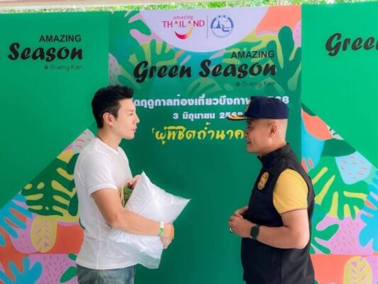 นอกจากนี้ นายสมหวัง อารีย์เอื้อ รองผู้ว่าราชการจังหวัดบึงกาฬ ยังได้เชิญชวนนักท่องเที่ยว ร่วมมาสัมผัสกับความสด ความเป็นธรรมชาติ และอากาศที่ดี ได้ที่จังหวัดบึงกาฬ ตลอดฤดูกาลท่องเที่ยวนี้ โดย รองผู้ว่าราชการจังหวัดบึงกาฬ กล่าวว่า จังหวัดบึงกาฬถือว่าเป็นสิ่งมหัศจรรย์ลุ่มน้ำโขง มีสถานที่ท่องเที่ยวหลายแห่ง โดยเฉพาะอย่างยิ่งในฤดูกาลท่องเที่ยว ตั้งแต่ 1 มิถุนายน ของทุกปี หากเข้ามาที่จังหวัดบึงกาฬ นักท่องเที่ยวสามารถแวะท่องเที่ยวตามเส้นทางได้ เช่น วัดถ้ำศรีธน จากนั้นเข้ามาที่สะดือแม่น้ำโขง-แก่งอาฮง, หินสามวาฬ, วัดป่าเมืองเหือง และเข้าสู่ถ้ำนาคา ซึ่งเป็นไฮไลท์ของสถานที่ท่องเที่ยว โดยในช่วงนี้ถือว่าเป็นช่วงเทศกาลสำคัญ เราได้รับการสนันสนุนจากการท่องเที่ยวแห่งประเทศไทย สำนักงานอุดรธานี เข้ามาส่งเสริมสนับสนุนเส้นทางการท่องเที่ยว ซึ่งวันนี้มีดาราอย่าง น้องโดม ปกรณ์ ลัม ที่หลาย ๆ คนชื่นชอบ มาเห็นตัวจริงแล้วรูปหล่อมาก ได้มาช่วยในการประชาสัมพันธ์การท่องเที่ยว และเดินขึ้นถ้ำนาคา จึงขอขอบคุณทุกภาคส่วนที่ได้มาช่วยสนับสนุนการท่องเที่ยวของจังหวัดบึงกาฬของเรา ซึ่งจังหวัดบึงกาฬเป็นสถานที่ที่มีความสด ความเป็นธรรมชาติ อากาศดี ถ้าต้องการอากาศดี ความเป็นธรรมชาติ เชิญมาที่จังหวัดบึงกาฬ ซึ่งปฏิทินการท่องเที่ยวของจังหวัดบึงกาฬบ้านเราสามารถเที่ยวได้ทั้งปี แต่ถ้าอยากมาช่วงสด ๆ อากาศดี ๆ ต้องมาในช่วงนี้ เดือนมิถุนายน 2568 และทุกปีก็จะเปิดช่วงนี้ พร้อมขอเชิญชวนพี่น้องประชาชนนักท่องเที่ยวได้มาเยี่ยมเยือนจังหวัดบึงกาฬ ซึ่งถือว่าเป็นจังหวัดน้องใหม่ที่มีอนาคต ไม่ว่าจะเป็นเรื่องความเจริญ หรือเรื่องต่าง ๆ โดยเฉพาะหากท่านมาแล้ว ท่านจะได้พบกับสถานที่ท่องเที่ยวที่มีความสด ความใหม่ รวมทั้งสายมู ที่นอกจากมาเที่ยวแล้ว ท่านยังจะมีความโชคดีด้วย มาเที่ยวที่จังหวัดบึงกาฬของเราครับ.