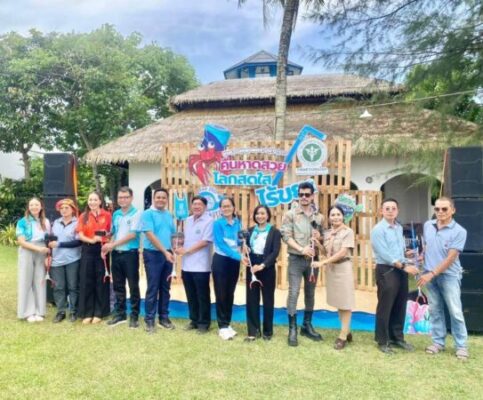 เมื่อช่วงบ่ายที่ผ่านมา วันที่ 5 มิ.ย.68 นายแพทย์ภาณุมาศ ญาณเวทย์สกุล อธิบดีกรมควบคุมโรค มอบหมายให้นางสาวอังคณา เมธากุล รองผู้อำนวยการกองโรคจากการประกอบอาชีพและสิ่งแวดล้อม จัดโครงการรณรงค์และประชาสัมพันธ์ กิจกรรมวันสิ่งแวดล้อมโลก ปี 2568 “คืนหาดสวย โลกสดใส ไร้ขยะ” ซึ่งกรมควบคุมโรค โดยกองโรคจากการประกอบอาชีพและสิ่งแวดล้อม เป็นเจ้าภาพจัดขึ้น โดยมีนายแพทย์วรา เศลวัตนะกุล นายแพทย์สาธารณสุขจังหวัดตราดร่วมกล่าวต้อนรับผู้เข้าร่วมโครงการ ซึ่งประกอบด้วยบุคลากรของกรมควบคุมโรค หน่วยงานภาครัฐในพื้นที่ อสม.รวมทั้งเยาวชนจากสถานศึกษาในพื้นที่อำเภอคลองใหญ่ และหน่วยงานในพื้นที่ ร่วม อสม.จัดขึ้นที่พบทะเลรีสอร์ท ชายหาดตาหนึก อำเภอคลองใหญ่ จังหวัดตราด โดยมีกิจกรรมประกอบด้วย การจัดเวทีเสวนาคืนหาดสวย โลกสดใส ไร้ขยะ โดย นางสาวอังคณา เมธากุล รองผู้อำนวยการกองโรคจากการประกอบอาชีพและสิ่งแวดล้อม นายสราวุฒิ มาตรทอง “อ้น” นักแสดงสายอนุรักษ์สิ่งแวดล้อม และนายทรงวิทย์ ภิรมย์ภักดิ์ หัวหน้ากลุ่มงานอนามัยสิ่งแวดล้อม สำนักงานสาธารณสุขจังหวัดตราด จากนั้นได้มีการเข้าร่วมโครงการร่วมกันเก็บขยะจากทะเลตลอดแนวชายหาดตาหนึก