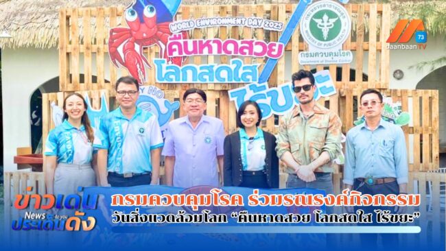 เมื่อช่วงบ่ายที่ผ่านมา วันที่ 5 มิ.ย.68 นายแพทย์ภาณุมาศ ญาณเวทย์สกุล อธิบดีกรมควบคุมโรค มอบหมายให้นางสาวอังคณา เมธากุล รองผู้อำนวยการกองโรคจากการประกอบอาชีพและสิ่งแวดล้อม จัดโครงการรณรงค์และประชาสัมพันธ์ กิจกรรมวันสิ่งแวดล้อมโลก ปี 2568 “คืนหาดสวย โลกสดใส ไร้ขยะ” ซึ่งกรมควบคุมโรค โดยกองโรคจากการประกอบอาชีพและสิ่งแวดล้อม เป็นเจ้าภาพจัดขึ้น โดยมีนายแพทย์วรา เศลวัตนะกุล นายแพทย์สาธารณสุขจังหวัดตราดร่วมกล่าวต้อนรับผู้เข้าร่วมโครงการ ซึ่งประกอบด้วยบุคลากรของกรมควบคุมโรค หน่วยงานภาครัฐในพื้นที่ อสม.รวมทั้งเยาวชนจากสถานศึกษาในพื้นที่อำเภอคลองใหญ่ และหน่วยงานในพื้นที่ ร่วม อสม.จัดขึ้นที่พบทะเลรีสอร์ท ชายหาดตาหนึก อำเภอคลองใหญ่ จังหวัดตราด โดยมีกิจกรรมประกอบด้วย การจัดเวทีเสวนาคืนหาดสวย โลกสดใส ไร้ขยะ โดย นางสาวอังคณา เมธากุล รองผู้อำนวยการกองโรคจากการประกอบอาชีพและสิ่งแวดล้อม นายสราวุฒิ มาตรทอง “อ้น” นักแสดงสายอนุรักษ์สิ่งแวดล้อม และนายทรงวิทย์ ภิรมย์ภักดิ์ หัวหน้ากลุ่มงานอนามัยสิ่งแวดล้อม สำนักงานสาธารณสุขจังหวัดตราด จากนั้นได้มีการเข้าร่วมโครงการร่วมกันเก็บขยะจากทะเลตลอดแนวชายหาดตาหนึก