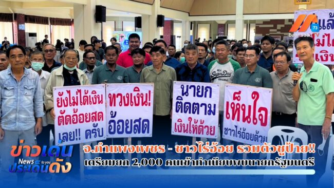 ทวงถามค่าส่วนต่างในการตัดอ้อยสด หลังทำตามนโยบายแก้ไขปัญหา PM2.5 แต่รัฐบาลไม่จ่ายเงินมา2 ปี ที่บริเวณหน้าสมาคมชาวไร่อ้อยเขต 6 กำแพงเพชรตัวแทนเกษตรกรชาวไร่อ้อยกว่า500ราย เดินทางเข้าพบนายมนตรี เลาหศักดิ์ประสิทธิ์ นายกสมาคมไร่อ้อยเขต 6 กำแพงเพชรและ เลขาธิการสหสมาคมชาวไร่อ้อยแห่งประเทศไทย เพื่อยื่นข้อเรียกร้องไปยังรัฐบาล โดยเฉพาะนางสาวแพทองธาร ชินวัตร นายกรัฐมนตรี ในการทวงถามค่าส่วนต่างในการตัดอ้อยสด ว่าจะอนุมัติจ่ายลงมาให้เกษตรกรชาวไร่อ้อยได้เมื่อไร หลังทำตามนโยบายรัฐบาลในการแก้ไขปัญหา PM2.5 แต่รัฐบาลกลับไม่จ่ายเงินมาสองปี แบบนี้ชาวไร่อ้อยจะเอาเงินที่ไหนมาลงทุน ซึ่งหากไม่มีเงินลงทุนอาจทำให้ผลผลิตตกต่ำลงได้