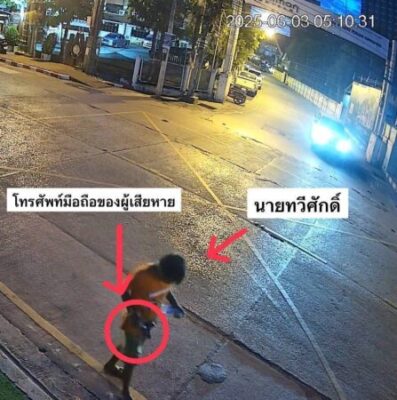 “ชุดสืบสวน สภ.เมืองขอนแก่น ได้ตรวจสอบที่เกิดเหตุ ตรวจสอบกล้องวงจรปิดบริเวณที่เกิดเหตุต่อเนื่องเรื่อยมา ซึ่งสามารถบันทึกเหตุการณ์และตำหนิรูปพรรณคนร้ายดังกล่าวข้างต้นได้อย่างชัดเจน พบคนร้ายที่ก่อเหตุในคดีนี้เป็นชายจำนวน 2 คน โดยคนหนึ่งสวมเสื้อสีส้ม ส่วนอีกคนสวมเสื้อสีขาว พบพฤติกรรณมีการส่งสัญญาณเรียกกัน และเมื่อมาถึงบริเวณที่เกิดเหตุ ได้ขโมยทรัพย์สินไป โดยคนร้ายที่สวมเสื้อสีส้มเอาโทรศัพท์ของผู้เสียหายไปจำนวน 1 เครื่อง ส่วนชายที่สวมเสื้อสีขาวลักเอากระเป๋าสะพายและของในกระเป๋าไปทั้งหมด แล้วแยกย้ายกันหลบหนีไป จากนั้นชุดสืบสวนได้นำภาพคนร้ายที่ปรากฏตามกล้องวงจรปิดออกสืบสวนหาว่าบริเวณที่เกิดเหตุและบริเวณพื้นที่ใกล้เคียง กอปรกับได้รับแจ้งจากพลเมืองดีว่าคนร้ายที่ปรากฎตามกล้องวงจรปิด ซึ่งเป็นคนที่ไม่มีที่อยู่อาศัยเป็นหลักแหล่ง และมักจะตระเวนเดินวนเวียนอยู่บริเวณศาลหลักเมือง”