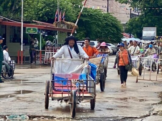 เมื่อช่วงเช้าที่ผ่านมา วันที่ 9 มิถุนายน 68 บรรยากาศที่จุดผ่านแดนถาวรบ้านหาดเล็ก อำเภอคลองใหญ่ จังหวัดตราด หลังมีการปรับเวลาเปิดด่าน จุดผ่านแดนถาวรบ้านหาดเล็กระหว่างเวลา 06.00 น. -22.00 น. เป็นระหว่างเวลา 08.00 น. – 16.00 น. มาตั้งแต่วันนี้ ในช่วงเช้าวันนี้ หลังเคารพธงชาติในเวลา 08.00 น. หน่วยทหารได้ดำเนินเปิดประตูด่านของจุดผ่านแดนถาวรบ้านหาดเล็ก รถสินค้าจากฝั่งไทยจำนวนมากยังคงไปรอเวลาเปิดจุดผ่านแดนถาวรบ้านจามเยี่ยม ตำบลปากคลอง อำเภอมณฑลสีมา จังหวัดเกาะกง ที่ยังคงเปิดเวลา 09.00 น. เช่นวานนี้ ในขณะที่ นาวาโท ธีรพล ลําใยสถิต ผู้บังคับหน่วยเฉพาะกิจนาวิกโยธิน 182 พร้อมด้วยเจ้าหน้าที่ตรวจคนเข้าเมืองตราด และด่านศุลกากรคลองใหญ่ ได้ลงมาตรวเยี่ยมการปฏิบัติงานของกำลังพลบริเวณจุดผ่านแดนถาวรบ้านหาดเล็ก โดยได้มีมาตรการตรวจเข้มสัมภาระที่ติดตัวมากับแรงงานชาวกัมพูชาทุกคนที่เดินทางเข้ามาทำงานในเขตประเทศไทย รวมทั้งตรวจเข้มรถบรรทุกสินึค้าทั้งฝั่งขาเข้าและฝั่งขาออก เพื่อป้องกันสิ่งผิดกฎหมายต่าง ๆ