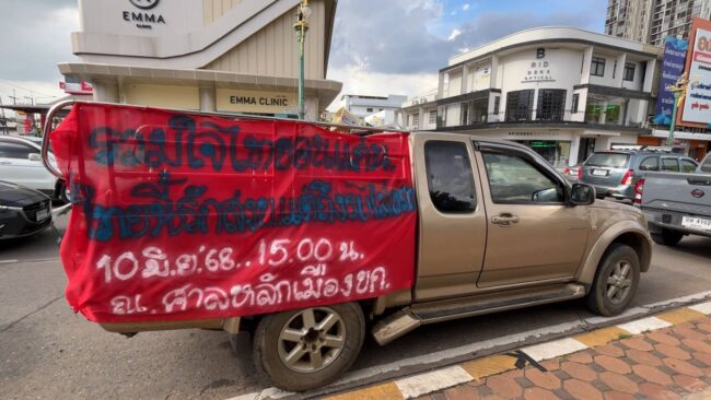 เมื่อเวลา 16.00 น. วันที่ 10 มิ.ย. 2568 ที่อนุสาวรีย์ประชาธิปไตย จ.ขอนแก่น นายคุ้มพงษ์ ภูมิภูเขียว ผู้ประสานเครือข่ายขอนแก่นใสสะอาด นำภาคีเครือข่ายจัดกิจกรรมชุมนุม เปิดเวทีรวมใจไทขอนแก่นส่งใจให้ทหารกล้ารักษาอธิปไตยชาติ โดยเหล่าผู้ชุมนุมได้พร้อมใจจัดกิจกรรมร้องเพลงชาติร่วมกัน เพื่อส่งกำลังใจให้ทหารกล้ารักษาอธิปไตยชายแดน ท่ามกลางการรักษาความปลอดภัยของเจ้าหน้าที่ตำรวจ สภ.เมืองขอนแก่น ทั้งในและนอกเครื่องแบบอย่างเข้มงวด