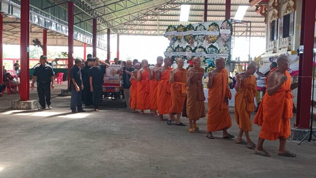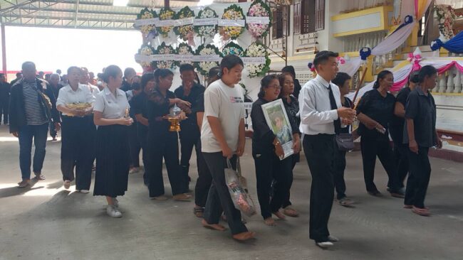 วันนี้ (10 มิ.ย.68) ที่ วัดโพธิญาณ (เกาะเค็ด) ต.หนองโพรง อ.ศรีมหาโพธิ์ จ.ปราจีนบุรี คณะกลองยาว (ลำยองกลองยาว) ได้นำคณะกลองยาวแห่หน้าศพของนายนาวี วาดถนน อายุ 57 ปีได้เสียชีวิตด้วยอุบัติเหตุเมื่อวันที่ 6 มิ.ย.68 ที่ผ่านมาเป็นมือกลองของคณะกลองยาว และเป็นลูกน้องของหัวหน้าคณะกลองยาวซึ่งมีอาชีพรับเหมาก่อสร้าง หลังจากที่สูญเสียลูกน้องคนสำคัญที่ร่วมงานกันมายาวนานทุกคนก็รู้สึกเสียใจกับการจากไปของผู้เสียชีวิต เพื่อเป็นการไว้อาลัยให้กับผู้เสียชีวิตเป็นครั้งสุดท้ายจึงนำกลองยาวมาตีให้ดวงวิญญาณได้ดู และจะมีการตีกลองยาวแห่รอบเมรุอีกด้วย สวดพระอภิธรรมเป็นเวลา 3 คืน