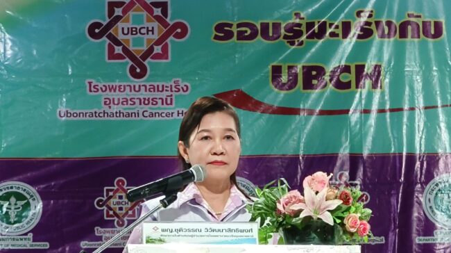 แพทย์หญิง ชุติวรรณ วิวัฒนาสิทธิพงศ์ รักษาการผู้อำนวยการโรงพยาบาบาลมะเร็งอุบลราชธานี กล่าวว่าโรงพยาบาลมะเร็งอุบลราชธานี กรมการแพพย์ ได้ตระหนักถึงความสำคัญดังกล่าว จึงได้จัดทำโครงการประชาสัมพันธ์ถ่ายทอดองค์ความรู้ด้านโรคมะเร็งสัญจร ในเขตสุขภาพที่ 10 “รอบรู้มะเร็งกับ UBCH” ครั้งที่ 25 “มิถุนายนเดือนแห่งการรณรงค์ส่งกำลังใจให้ผู้รอดชีวิตจากมะเร็ง” เพื่อส่งกำลังใจและยกย่องผู้ป่วยมมะเร็งพี่สามารถต่อสู้กับโรคนี้ได้อย่างกล้าพาญและอดทน อีกทั้งสร้างความรู้ ความเข้าใจ และส่งต่อความช่วยเหลือให้ผู้รอดชีวิต ให้มีคุณภาพชีวิตที่ดีไป ซึ่งในงานได้จัดให้มีกิจกรรมเสวนา หัวข้อ”มิถุนายนเดือนแห่งการรณรงค์ส่งกำลังใจให้ผู้ป่วยมะเร็ง” โดยนายแพทย์ กฤษณดนัย ตันติเศรษฐ แพทย์เฉพาะทางด้านโสต ศอ นาสิก ประธานคณะกรรมการสร้างเสริมสุขภาพและทำงานร่วมกับชุมชน โรงพยาบาลมะเร็งอุบสราชธานี และนายบุญหยาด หมั่นอุดส่าห์พยาบาลเฉพาะทางด้านโรคมะเร็ง โรงพยาบาลมะเร็งอุบลราชธานี บริการสุขภาพเพื่อประชาชน กิจกรรมส่งกำลังใจให้ผู้ป่วยมะเร็ง บริการอุปกรณ์ส่งเสริมภาพลักษณ์ ฟรี บริการให้คำปรึกษาด้านโรคมะเร็ง บริการตรวจคัดกรองมะเร็งปากมดลูกด้วยตนเองฟรี สาธิตการตรวจเต้านมด้วยตนเอง สาธิตการตรวจคัดกรองมะเร็งลำไส้ใหญ่และไส้ตรงด้วยตนเอง และสาธิตการตรวจคัดกรองพยาธิใบไม้ในตับในปัสสาวะด้วย.