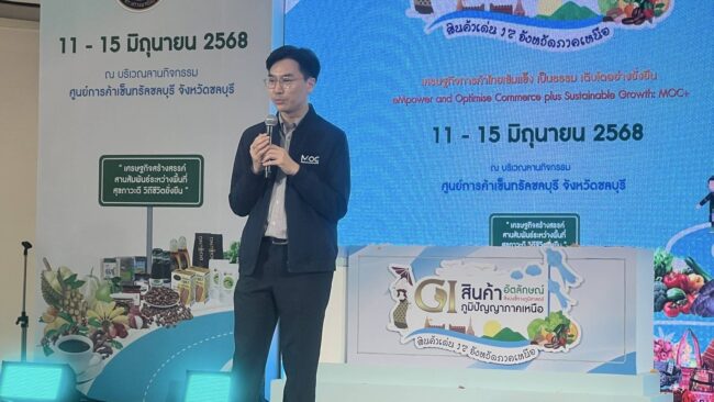 ทั้งนี้การจัดงานแสดงและจำหน่ายสินค้าดังกล่าว มีผู้ประกอบการสินค้า GI ซึ่งเป็นสินค้าที่มาจากแหล่งผลิตที่เฉพาะ มีคุณภาพหรือชื่อเสียงเป็นที่ยอมรับจากแหล่งผลิต ซึ่งจะได้รับตราสัญลักษณ์สิ่งบ่งชี้ทางภูมิศาสตร์ (GI) อาทิ ศิลาดลเชียงใหม่ กาแฟเทพเสด็จ เกลือภูเขาบ่อเกลือน่าน สับปะรดภูแลเชียงราย ผ้าหม้อห้อมแพร่ กล้วยไข่กำแพงเพชร ส้มโอท่าข่อยเมืองพิจิตร สินค้าผลิตภัณฑ์จังหวัด (PB : Provincial Brand) เป็นสินค้าหรือบริการที่ได้รับตราสัญลักษณ์รับรองผลิตภัณฑ์และบริการคุณภาพที่ผลิตในแต่ละจังหวัด ซึ่งมีความเป็นเอกลักษณ์และอัตลักษณ์ของแต่ละจังหวัด อาทิ น้ำมัลเบอร์รี่ (น่าน) น้ำผึ้งป่าก๋อย (เชียงราย) สมุนไพรชัยศิขริน (ลำพูน) เครื่องเงินปัญจพล (แม่ฮ่องสอน) รวมถึงสินค้าอัตลักษณ์อัตลักษณ์เด่น เป็นสินค้าที่มีความโดดเด่น มีชื่อเสียงของจังหวัด การสืบทอดองค์ความรู้ที่เน้นภูมิปัญญาท้องถิ่น อาทิ บ้านทองสมสมัย (สุโขทัย) น้ำพริกหนุ่มแม่ศรีนวล (ลำพูน) ข้าวซอยกินไหม (เชียงใหม่) ชไมพรผ้าฝ้าย (ลำพูน) เม็ดมะม่วงหินมพานต์ (อุตรดิตถ์) ของกลุ่มจังหวัดภาคเหนือ ๑๗ จังหวัด เข้าร่วมกิจกรรมครั้งนี้ จำนวน 35 คูหา โดยที่งาน จะมีไปตั้งแต่วันนี้ จนถึงวันที่ 15 มิถุนายน 2568โดยภายในงานจะมีกิจกรรมที่หลากหลาย โดยทางผู้รับจ้างได้ประสานผู้ประกอบการห้างโมเดิร์นเทรด รวมถึงผู้ประกอบการที่ดำเนินการจำหน่ายทางช่องทางออนไลน์ ที่สนใจ เบื้องต้นได้มีการลงนาม MOU แล้วมากกว่า 19 คู่ จากการจับคู่ธุรกิจภายในงานจะช่วยในการเพิ่มรายได้ให้กับเกษตรกร/ผู้ผลิต/ผู้ประกอบการของกลุ่มจังหวัดภาคเหนืออย่างต่อเนื่อง สำหรับการจัดงานในครั้งนี้คาดว่าจะมียอดจำหน่ายและยอดสั่งซื้อรวมกว่า 5 ล้านบาท.
