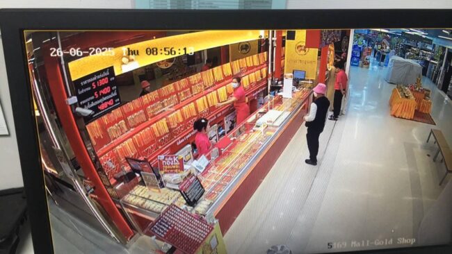 เมื่อเวลา 09.30 น.วันที่ 26 มิถุนายน ร.ต.ท.อร่าม โชติษิตานนท์ รอง สว.(สอบสวน) สภ.เมืองชลบุรี ได้รับแจ้งมีเหตุผลร้ายชิงทองภายในห้างทองเยาวราช กรุงเทพฯ ในห้างโลตัสพลัสมอลล์ ต.บ้านสวน อ.เมือง จ.ชลบุรี จึงรุดไปตรวจสอบพร้อม พ.ต.อ.คฑพล พรมดอนชาติ ผกก.สภ.เมืองชลบุรี และตำรวจสืบสวน พบ น.ส.กลอย (นามสมมุติ) พนักงานห้างทอง เปิดเผยด้วยอาการตกใจว่า เขาเดินเข้ามาและขอดูทอง หรือให้น้องเขารับไปเขาขอดูทอง 10 บาทแต่เราบอกว่าให้เขาถอดแมสแล้วถอดหมวกก่อนได้ไหม เขาไม่พูดเขาก็ชักปืนออกมาขู่เลย หลังจากนั้นก็คว้าเอาทองไปได้ทอง 10 บาท 2 เส้น 9 บาท 2 เส้นแล้ววิ่งหนีออกไป