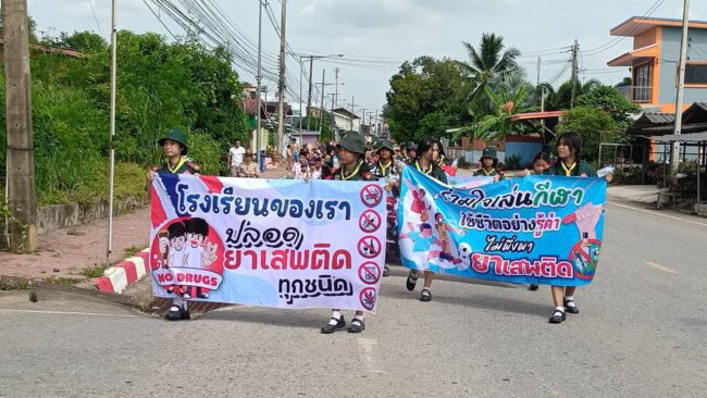 วันที่ 26 มิย.68 เทศบาลตำบลสระบัว ร่วมกับโรงเรียนชุมชนวัดเขาลูกช้าง ครู นักเรียน สถานีตำรวจภูธรสระบัว โรงพยาบาลส่งเสริมสุขภาพประจำตำบลลาดตะเคียน ร่วมกับชุมชนร่วมถือป้ายรณรงค์ต่อต้านยาเสพติดเนื่องในวันต่อต้านยาเสพติด ซึ่งกิจกรรมในวันนี้ได้เดินรณรงค์ถือป้ายรอบชุมชน เพื่อเป็นการกระตุ้นให้ประชาชนได้รับรู้ถึงพิษภัยของยาเสพติด (ยาบ้า) บุหรี่ไฟฟ้า ซึ่งเป็นอันตรายต่อตัวเองและผู้อื่น