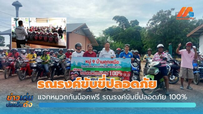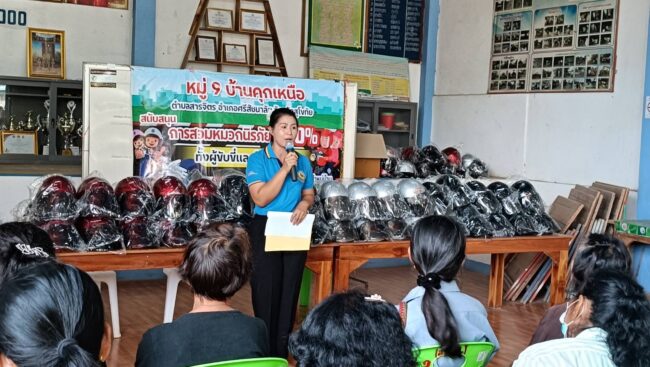 ผู้ใหญ่บ้านสุโขทัยแจกหมวกกันน็อคฟรี รณรงค์ขับขี่ปลอดภัย 100%