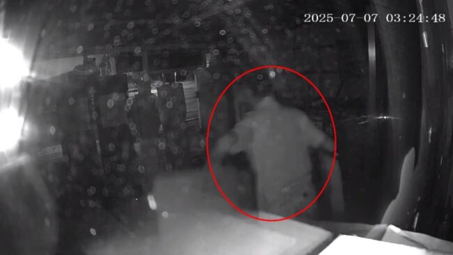 ภาพจากกล้องวงจรปิดจับภาพวันที่ 7 ก.ค.68 เวลา 03.22น. จับภาพคนร้ายเป็นชายเดินเข้ามาจากบริเวณข้างร้าน ลักษณะเหมือนคนเก็บของเก่าเดินเข้ามารื้อลังกระดาษภายในร้าน และรีบขนออกไปอย่างรวดเร็ว