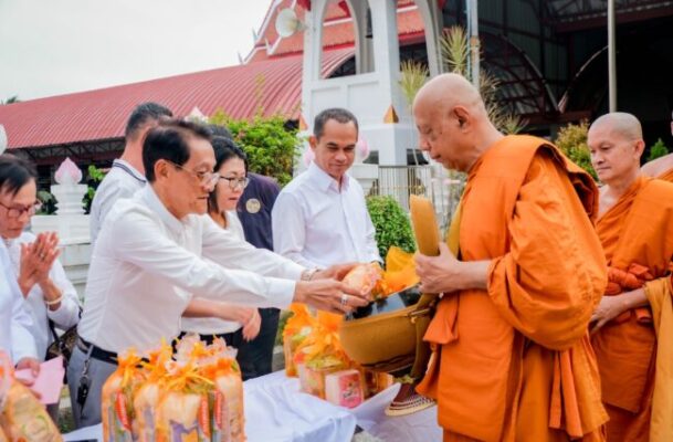 พุทธศาสนิกชนชาวไทยและมาเลเซียร่วมกันทำบุญตักบาตร เนื่องในวันอาสาฬหบูชา และวันเข้าพรรษา ประจำปี 2568