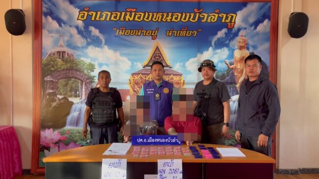 เมื่อวันที่ 11 กรกฎาคม 2568 ผู้สื่อข่าวรายงานว่า นายเตชิต ทรงบุญศาสตร์ นายอำเภอเมืองหนองบัวลำภู ได้สั่งการให้นายอนุชา ภู่เปี่ยมศักดิ์ หัวหน้าชุดปฏิบัติการพิเศษฝ่ายปกครองอำเภอเมืองหนองบัวลำภูพร้อมกำลัง เข้าจับกลุ่มนายสุริยา ฯอายุ 41 ปี พร้อมของกลางยาบ้า 10 เม็ด,สำเนาเงินล่อซื้อหนึ่งฉบับ,โทรศัพท์มือถือหนึ่งเครื่อง และนายคมเดชฯ อายุ 38 ปี ของกลางยาบ้า 2,081 เม็ด ,โทรศัพท์มือถือหนึ่งเครื่อง และผลตรวจปัสสาวะเป็นสีม่วงทั้งสองคน ที่ตำบลนามะเฟือง อำเภอเมือง จังหวัดหนองบัวลำภู