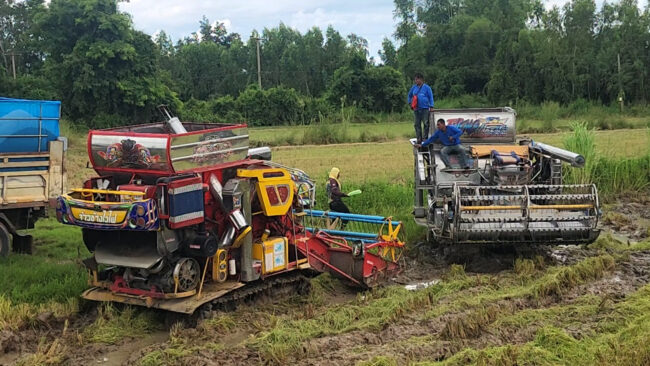 จ.พิจิตร :(มีคลิป) ชาวนาลุ่มน้ำยมพิจิตรเร่งเกี่ยวข้าวหนีน้ำท่วม สุดระกำช้ำใจราคาข้าวแค่เพียง 5,800 บาท